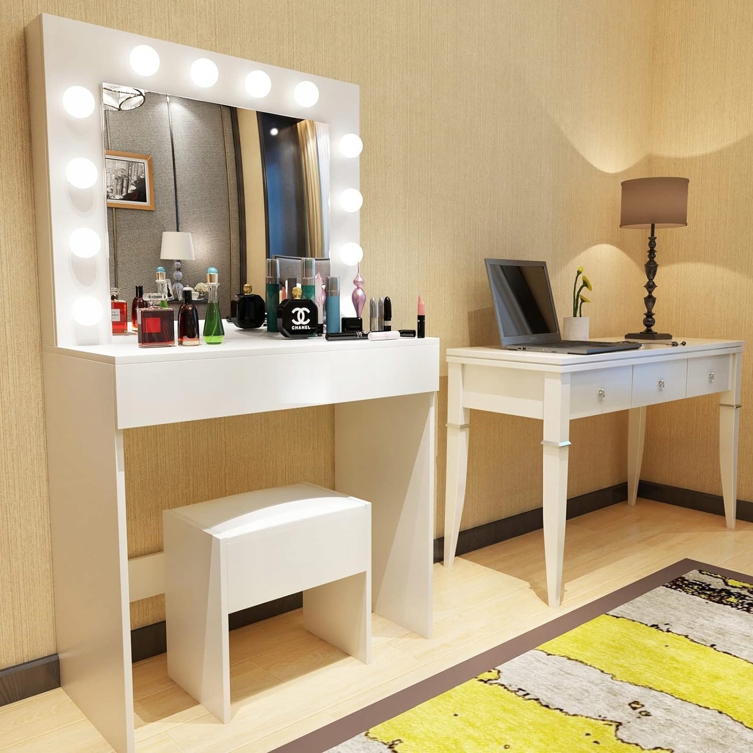 TOALETKA KOSMETYCZNA LUSTRO WIZAŻ OŚWIETLENIE LED + KRZESŁO