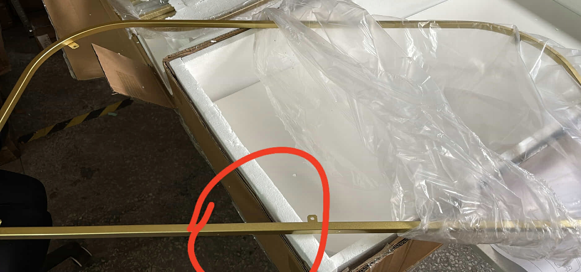 Toaletka Tiara, 110 x 122 cm, biało-złota, toaletka z lustrem LED, WADY!