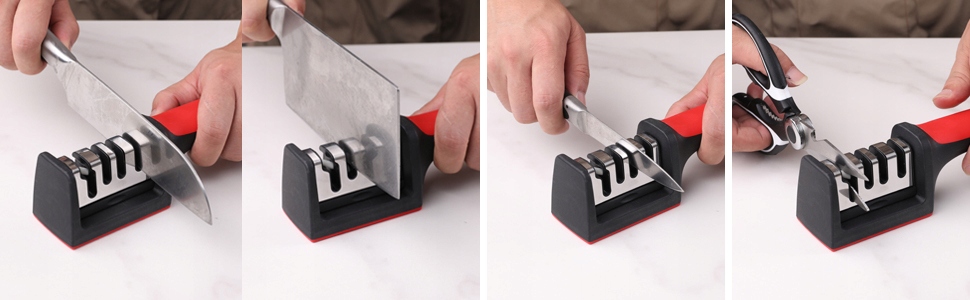 Заточка ножей еще никогда не была такой простой. Эта точилка для ножей имеет встроенный алмазный стержень, керамический стержень и лезвие из вольфрамовой стали для заточки, ремонта и полировки b> ваши кухонные ножи. Устройство также оснащено эргономичной ручкой и нескользящей резиновой основой для поддержки.