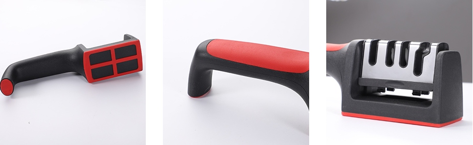 Наша точилка была разработана с учетом вашей безопасности. Противоскользящий резиновый коврик внизу обеспечивает надежную опору и предотвращает нежелательное скольжение во время заточки. Эргономичная ручка гарантирует надежный и устойчивый захват, делая заточку комфортной и безопасной. Кроме того, наша точилка подходит как для правшей, так и для левшей, что делает ее универсальным инструментом на любой кухне.