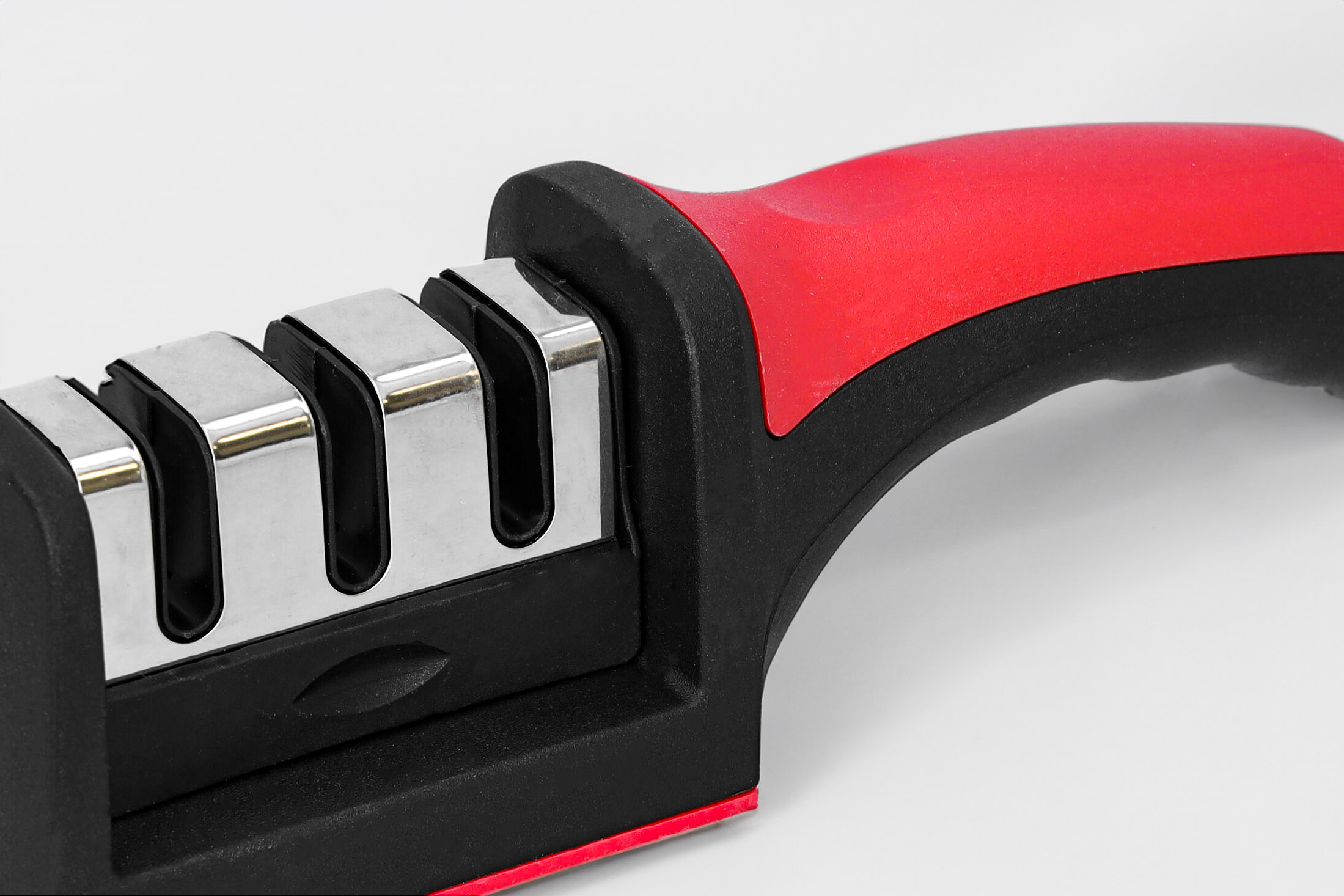 Конструкция точилки ориентирована на безопасность и удобство использования. Эргономичная ручка и устойчивое нескользящее основание обеспечивают комфорт при заточке ножей и защищают от скольжения по рабочей поверхности.
