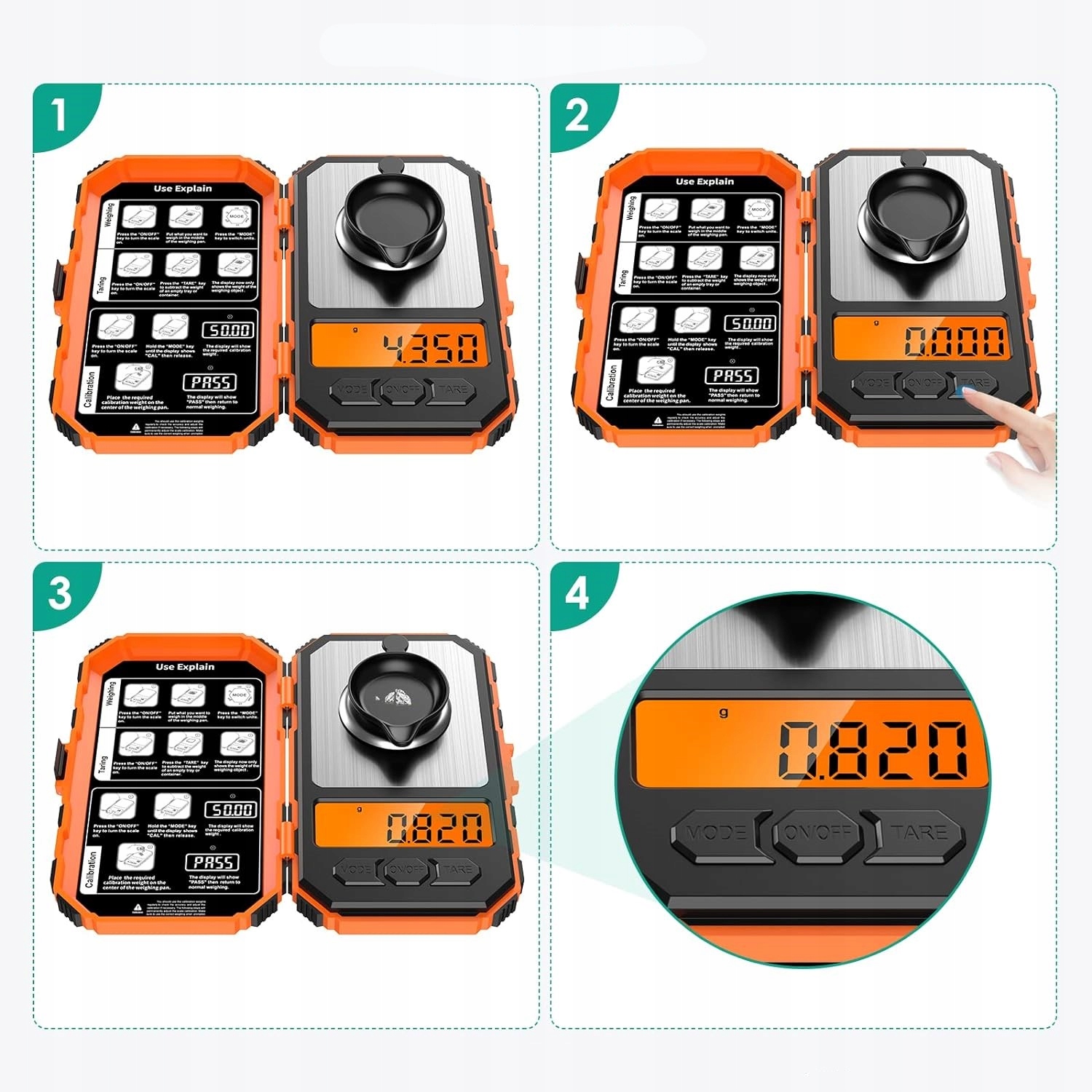 Мини-весы включают в себя 6 различных единиц измерения (г/унция/унция/сухая масса/гн) для преобразования веса. Нажатие кнопки MODE позволяет легко преобразовать результаты измерений за считанные секунды.