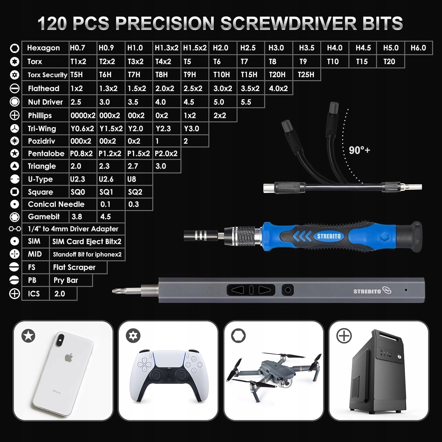 набор точных стрибитовых винтов содержит: будет улучшать работу по ремонту; 1 ручная точная отвертка для проектов, требующих большего крутящего момента; 120 точных битов для большинства электронных компонентов; 22 Инструменты ремонта для различных работ разборки и технического обслуживания. Этот набор электрических отверток является важным элементом оборудования для ИТ -техников, компьютеров и профессиональной механики.