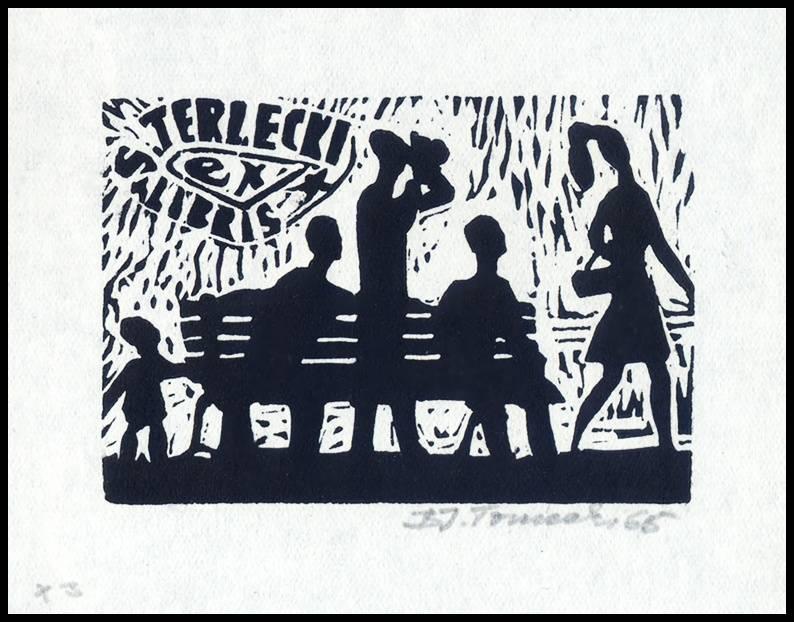 Tomecki Bronislaw 1965 Exlibris x3 Linocut 161