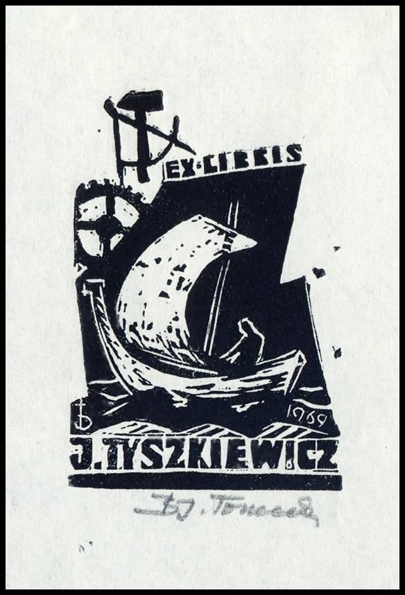 Tomecki Bronislaw 1969 Exlibris x3 корабль 250