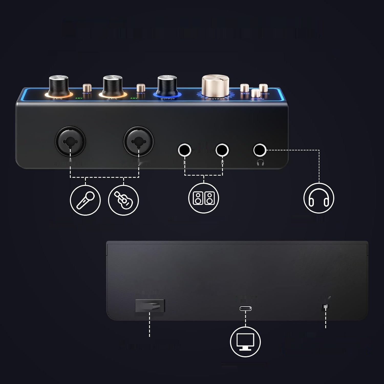 Аудио-интерфейс Tonor TX510, 2-канальный XLR-миксер с RGB, Black