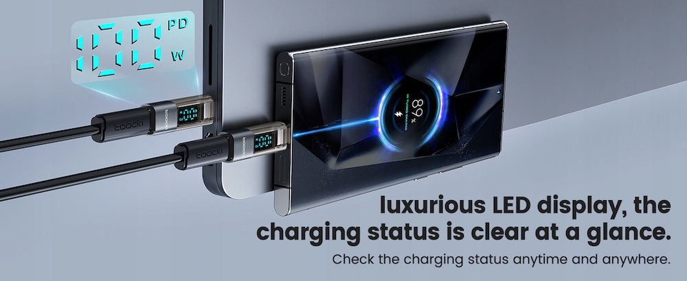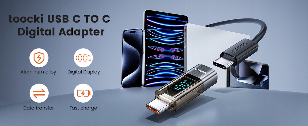 Toocki Type-C męski ToType-C żeński adapter OTG PD 100w cyfrowy wyświetlacz