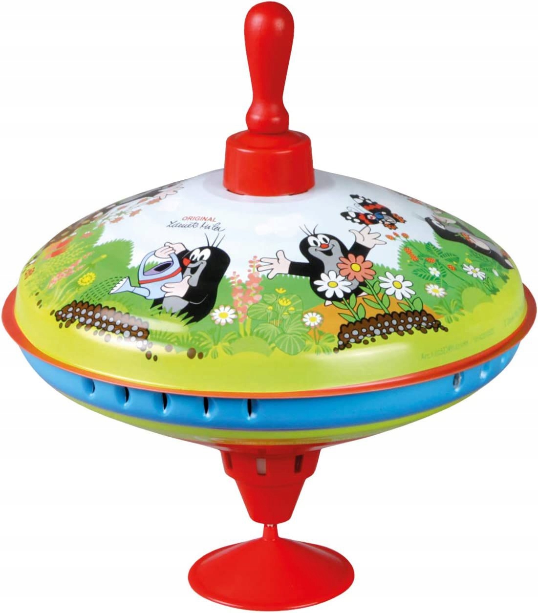 Волчок LENA из листового металла, украшенный мотивами Кротов, диаметром 19 см. Во время вращения он издает характерные шумы. Подходит для детей от 18 месяцев. Упаковано в красочную упаковку с подробной информацией о продукте.