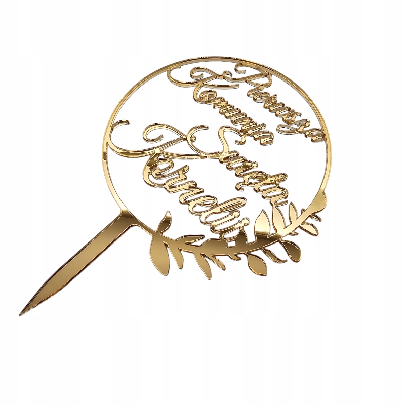 Этот топпер изготовлен из изысканного золотого зеркала, этот топпер исходит с блеском и изощренностью, будучи долговечным украшением. Имя ребенка помещается на его поверхность, что дает ему индивидуальный и уникальный характер, персонализируя его для юбилея. Золотое зеркало дает ему роскошное выражение, подчеркивая важность того дня. Этот топпер для пирога причастия не только украшает, но и становится прекрасным сувениром, который будет наслаждаться сердцами юбилея и гостей в течение многих лет, напоминая об этом уникальном событии.