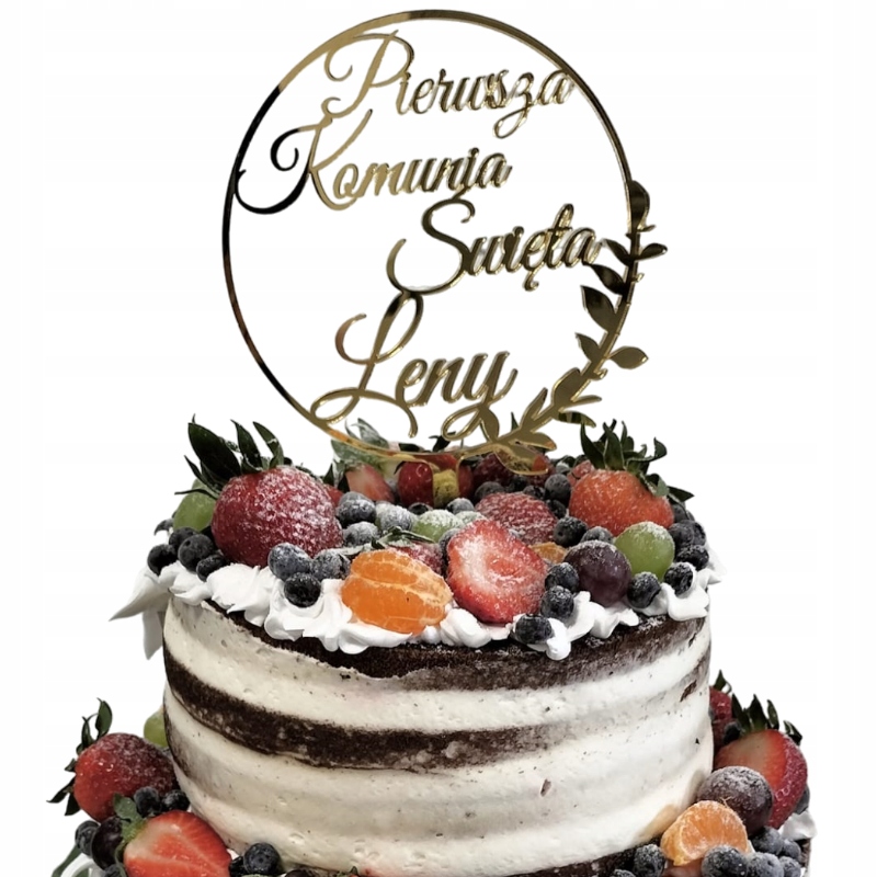 Topper для причастия с названием Golden First Camnion Name Golden Mirror Cake