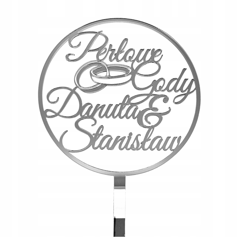 Топпер для торта 30 річниця весілля Перлове весілля з іменами срібне дзеркало