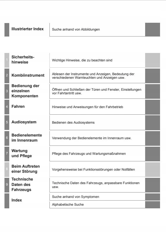 Руководство пользователя Toyota содержит все версии оборудования и полезную информацию о том, как эффективно и безопасно использовать транспортное средство, например, в WSKźniki, управляющие лампы, открытие и закрытие света и видимость, сиденья, места для хранения, отопление, вентиляция, кондиционер, эксплуатационные, советы по эксплуатации автомобиля, транспортное средство, транспортное средство, аварийное транспортное средство. Предохранители, замена ламп-технологических данных ... и многие другие вещи, которые дают ощущение безопасности и комфорта для путешествий. Руководство автомобиля новое и в польском
