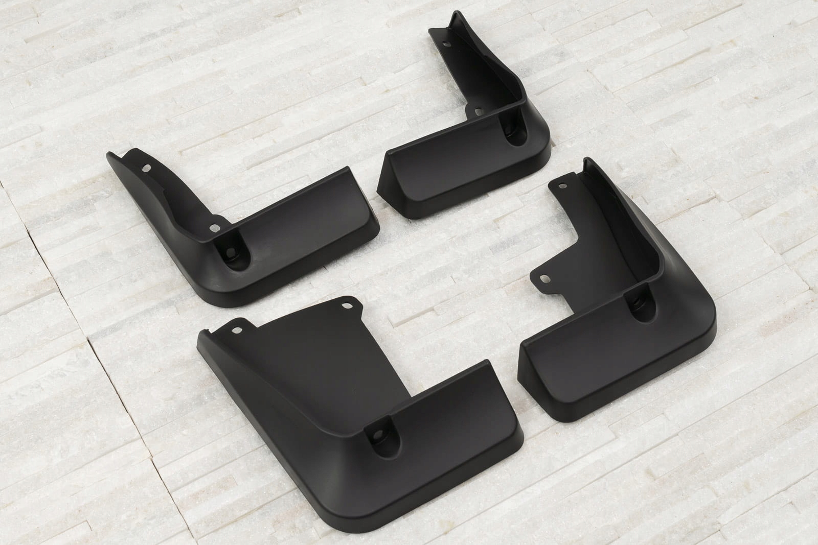 В комплект входит комплект из четырех брызговиков и элементов крепления. Изделие устанавливается на заводские места, без дополнительных доработок. Мы рекомендуем установку в профессиональной мастерской.