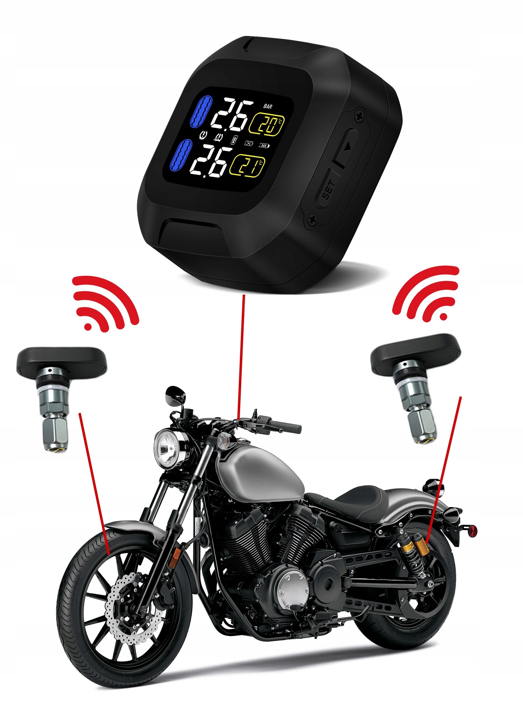 Идеальный набор дистанционного давления и измерения температуры мотоциклов. TPMS повышает вашу безопасность на дороге - мониторинг давления и температуры шин и температура, модель M3 может отправлять информацию о давлении и температуре в течение 3S после изменения. Если изменения давления и температуры не являются насильственными - датчики, установленные в BACT, отправляют информацию один раз каждые 3 минуты.