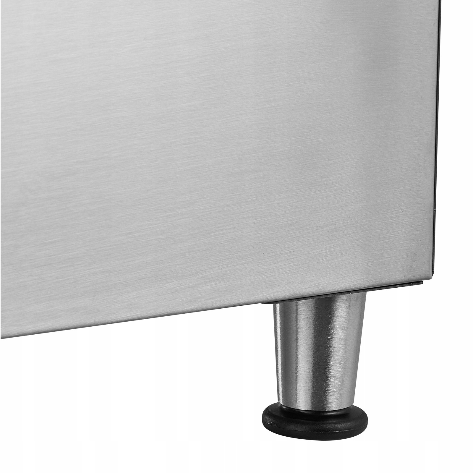 Температуру можно удобно регулировать в диапазоне от 80 до 200 °C (от 175 °F до 390 °F). Промышленная фритюрница автоматически отключается, если температура превышает 230 °C (446 °F) или выходит из строя терморегулятор.