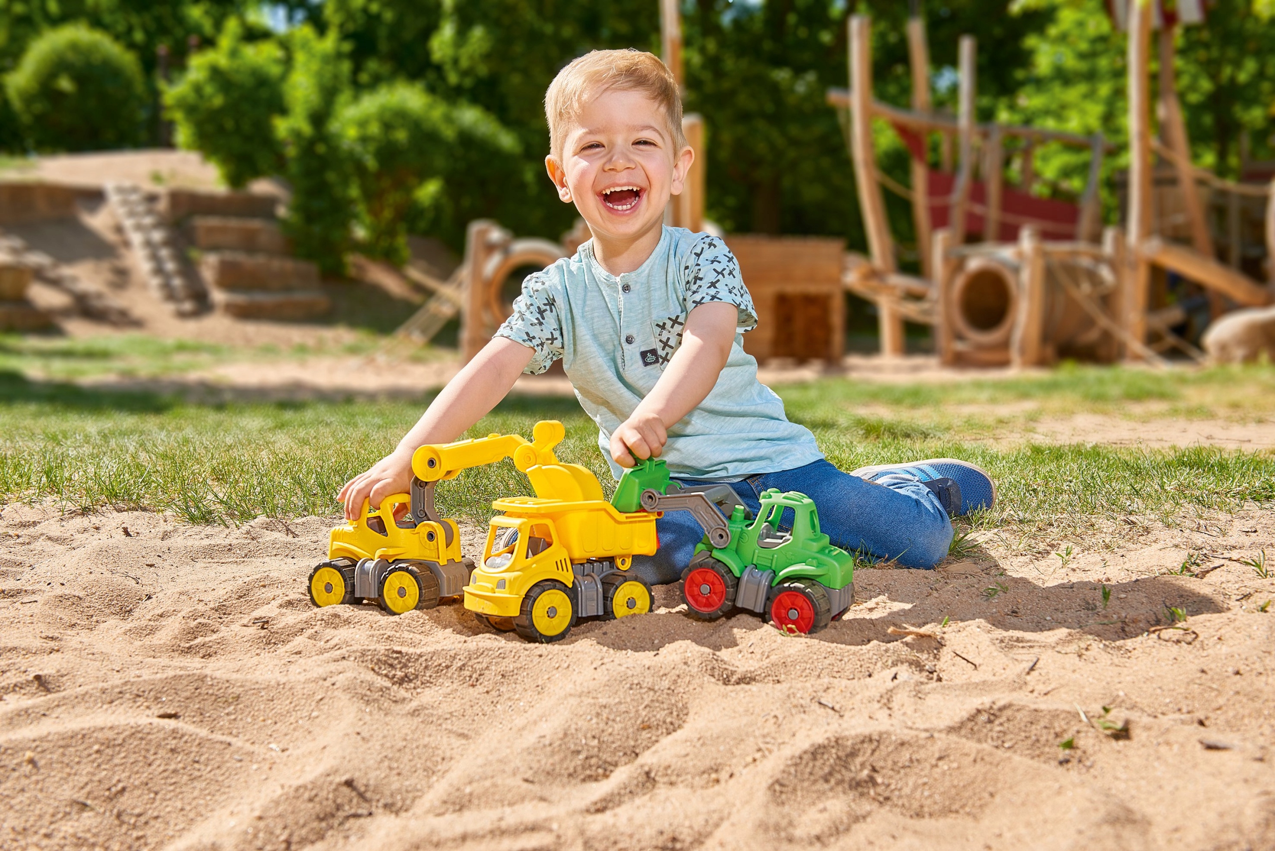- интенсивный зеленый цвет радует глаз маленьких строителей