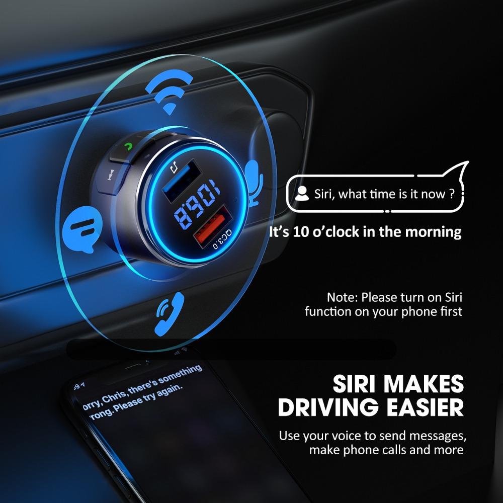 Заряжайте 2 устройства одновременно с помощью автомобильного знака Bluetooth. Порт QC3.0 позволяет заряжать телефон до 80% за 35 минут, а другой USB-порт для зарядки (5 В/1 А) также работает как порт U-диска.