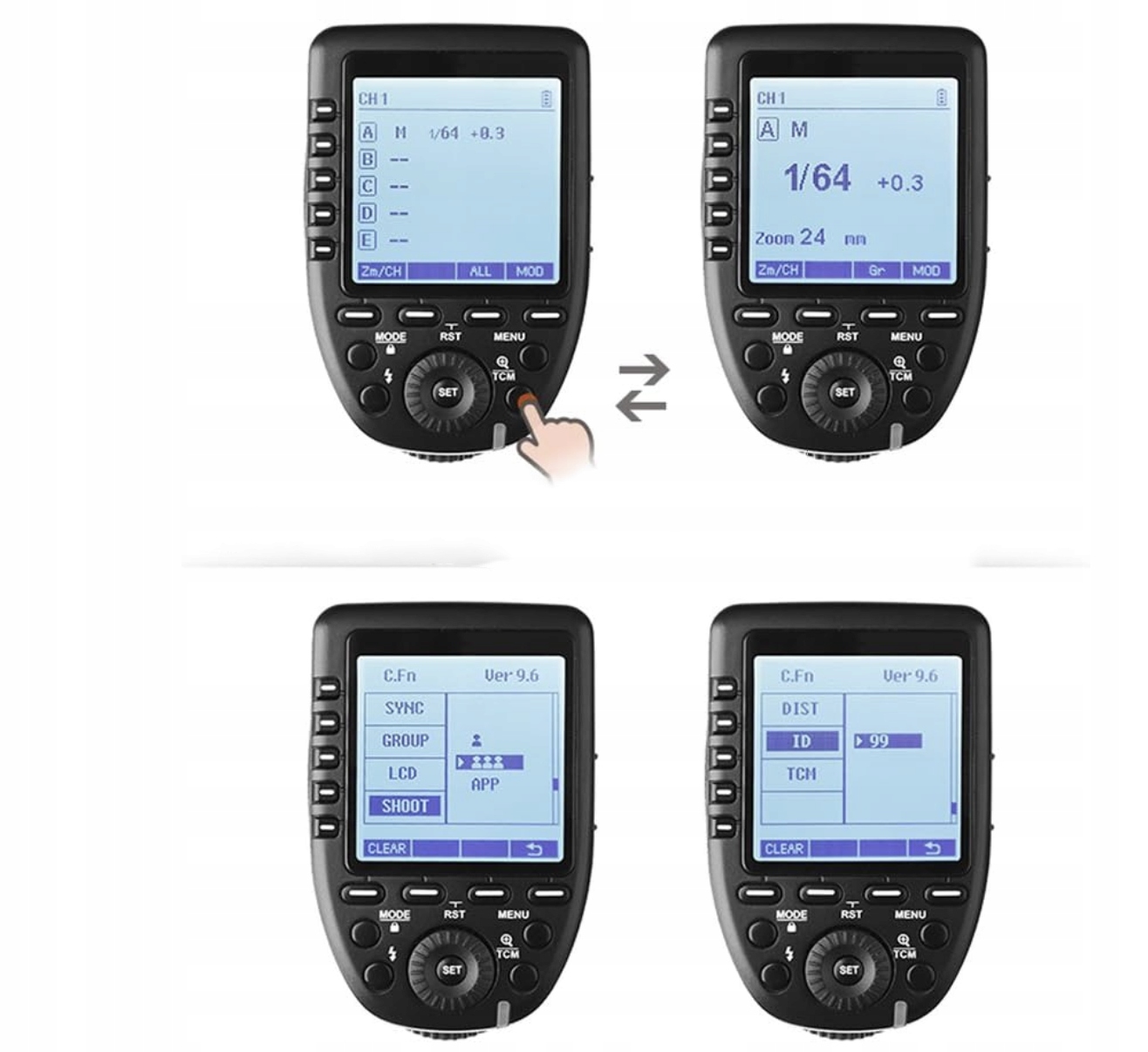 Позволяет осуществлять беспроводное управление вспышкой и дистанционное срабатывание вспышки (5 групп и 32 канала)