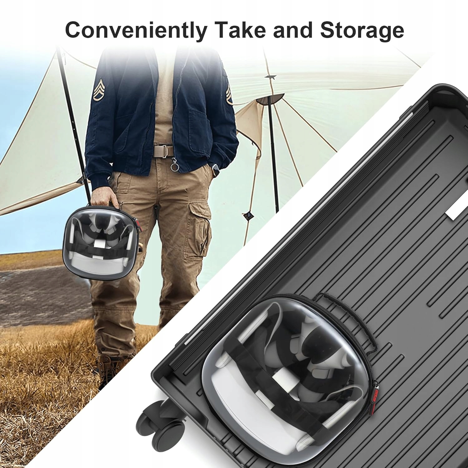 Solid and Safe: жесткий случай для Quest 3S/Quest 3/Vision Pro изготовлен из высококачественного прочного материала, а встроенная гибкая лента безопасно закрепляет устройство, предотвращает его удары и воздействия, благодаря какой хранилище безопаснее.