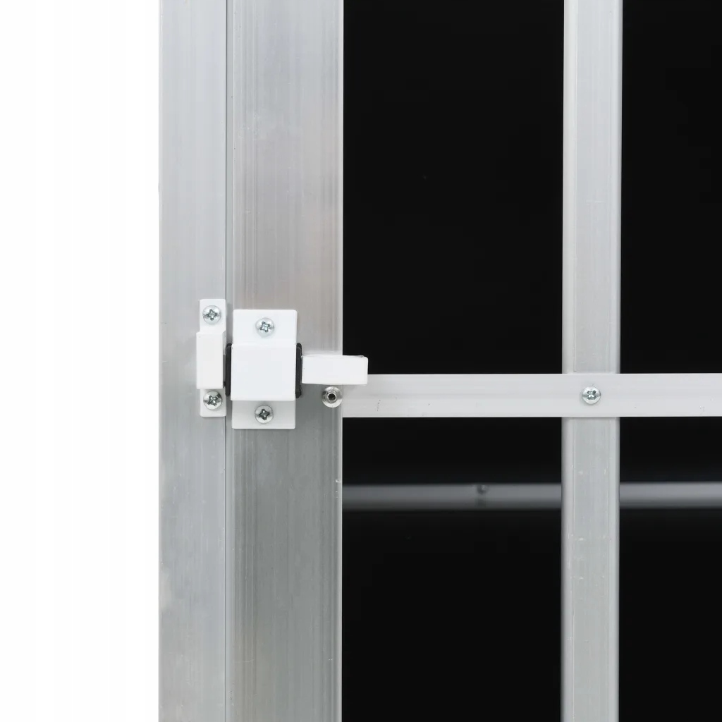 Клетка для собаки изготовлена из алюминия и МДФ, что делает ее прочной и простой в уходе. Пластиковые соединения по углам защитят вашего питомца от травм. Инновационный дизайн позволит питомцу наблюдать за происходящим вокруг и обеспечивать надлежащую вентиляцию. Двойная конструкция двери облегчает вход и выход. Клетка легкая, поэтому ее легко можно положить в машину. Изделие легко установить.