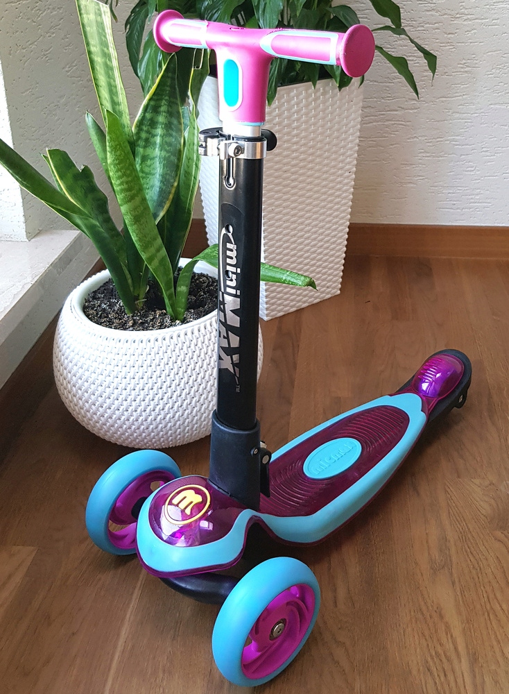 Чрезвычайно безопасный скутер, оснащенный светящимися колесами и светящимися светодиодом в передней части скутера. Приводя к нему вашего ребенка, он будет тренировать чувство баланса и координации.