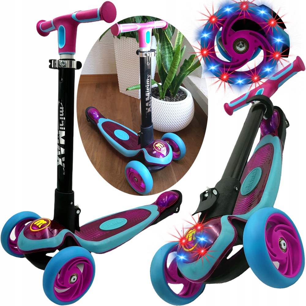 Большая привлекательность, которая будет порадовать каждого ребенка Сияет во время управления светодиодными колесами и передней частью скутера > Большие колеса обеспечивают комфорт. Регулировка высоты 3 градусов позволит рулевому колесу быть идеальным для высоты ребенка, а крутые передние колеса сделают маневрирование автомобиля проще и стали более стабильными. не скользит также увеличивает комфорт и безопасность вождения