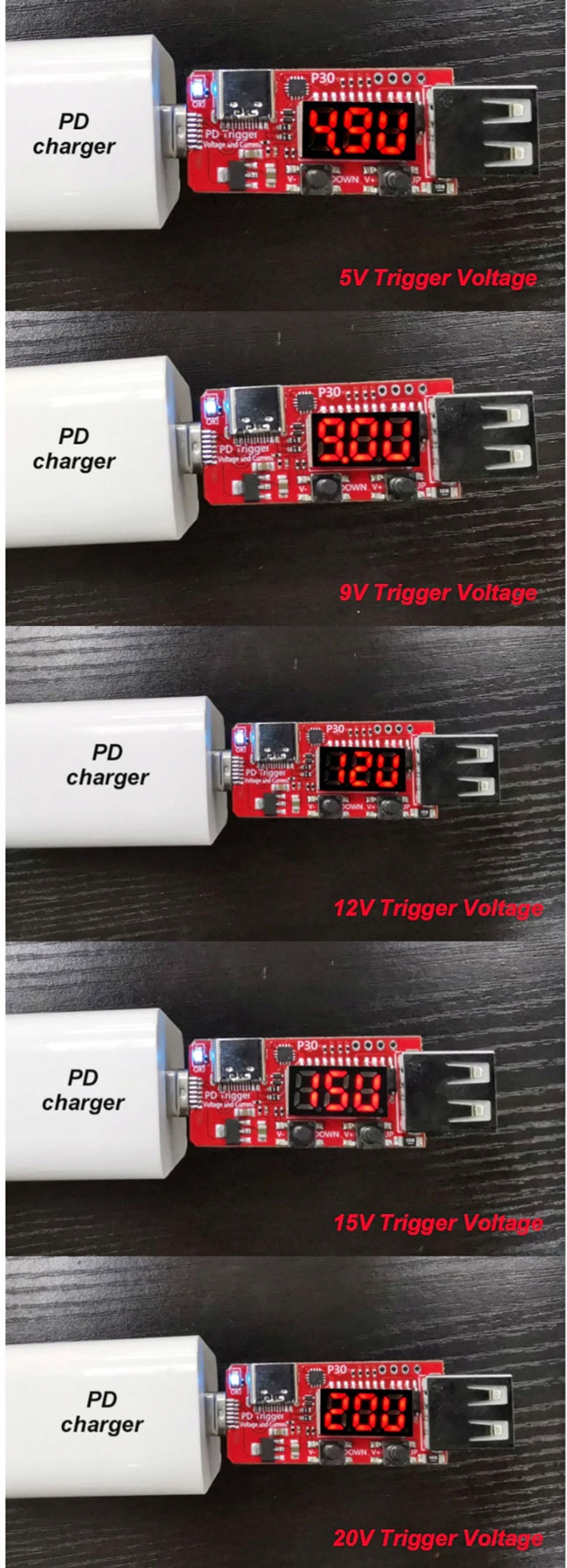 Например, конфигурация 12 В, адаптер поддержка триггера 5915 20 В, 9 В.