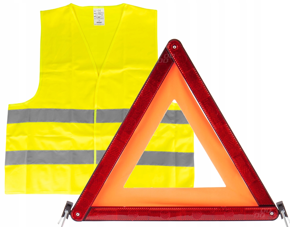 Трикутник попередження AMiO 02999 + Попереджувальний жовтий жилет СВ-01 з сертифікатом