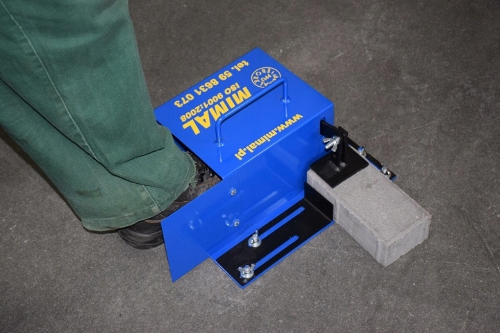 Держатель для лодыжки UNK используется для безопасного удержания брусчатки во время ее обрезки на нужную длину или ширину, без риска повреждения ступня . Устройство имеет плавную регулировку ширины и постепенную регулировку высоты установки куба. Ручка на корпусе облегчает его транспортировку по строительной площадке.