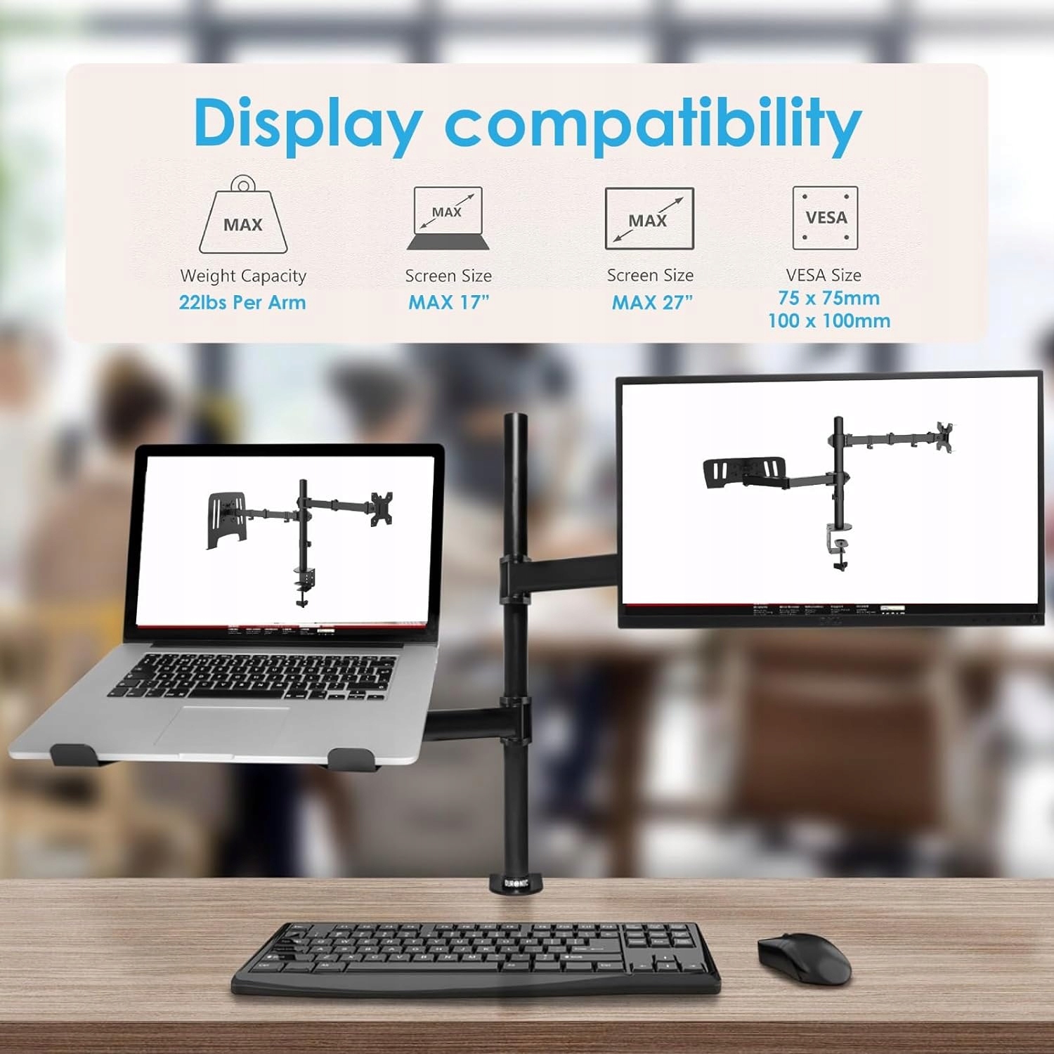 Подставка для монитора и ноутбука Ev024-uk — решение, обеспечивающее комфортную работу как с монитором, так и с ноутбуком. Благодаря универсальному креплению VESA вы можете свободно регулировать положение монитора и ноутбука под свои нужды. Максимальная эффективность во время работы гарантирована!