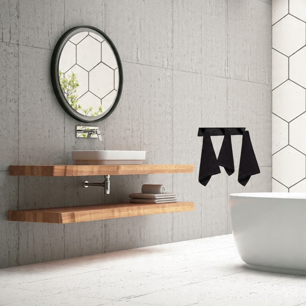 - Дизайн: Вешалка выполнена в стиле лофт, что делает ее подходящей для современных ванных комнат и привносит элегантный акцент.