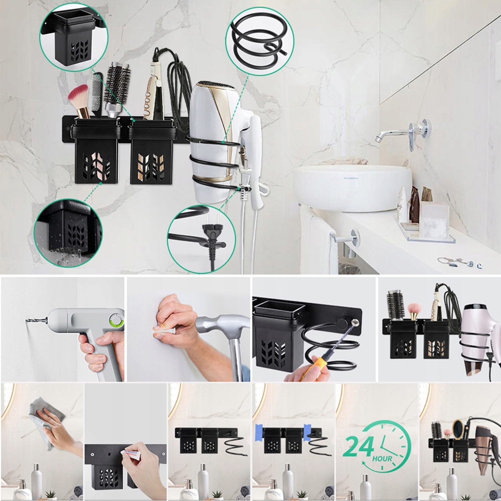 - Можно хранить В этом настенном держателе для фена есть почти все аксессуары для волос, такие как фены, выпрямители, щипцы для завивки, щетки для волос, бритвы и многое другое.