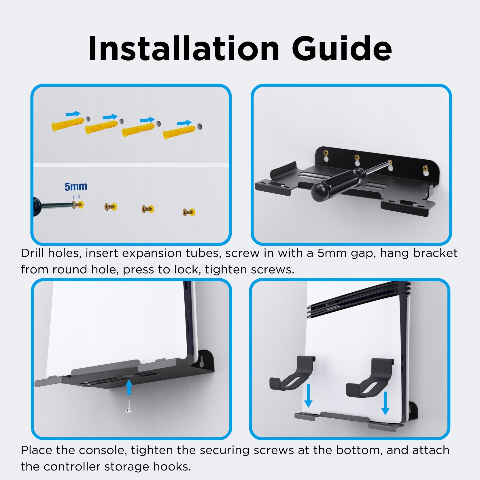 Устройства для PlayStation 5 Pro / Slim и Dualsense Controllers: десять стальных настенных ручек доступны непосредственно для PlayStation 5 Pro / SLIM (версии с диска и цифровыми) и контроллеры DualSense, которые облегчают игровое оборудование в методах управления и обслуживания.