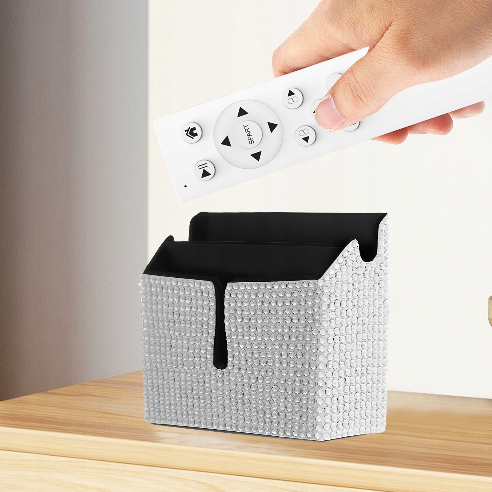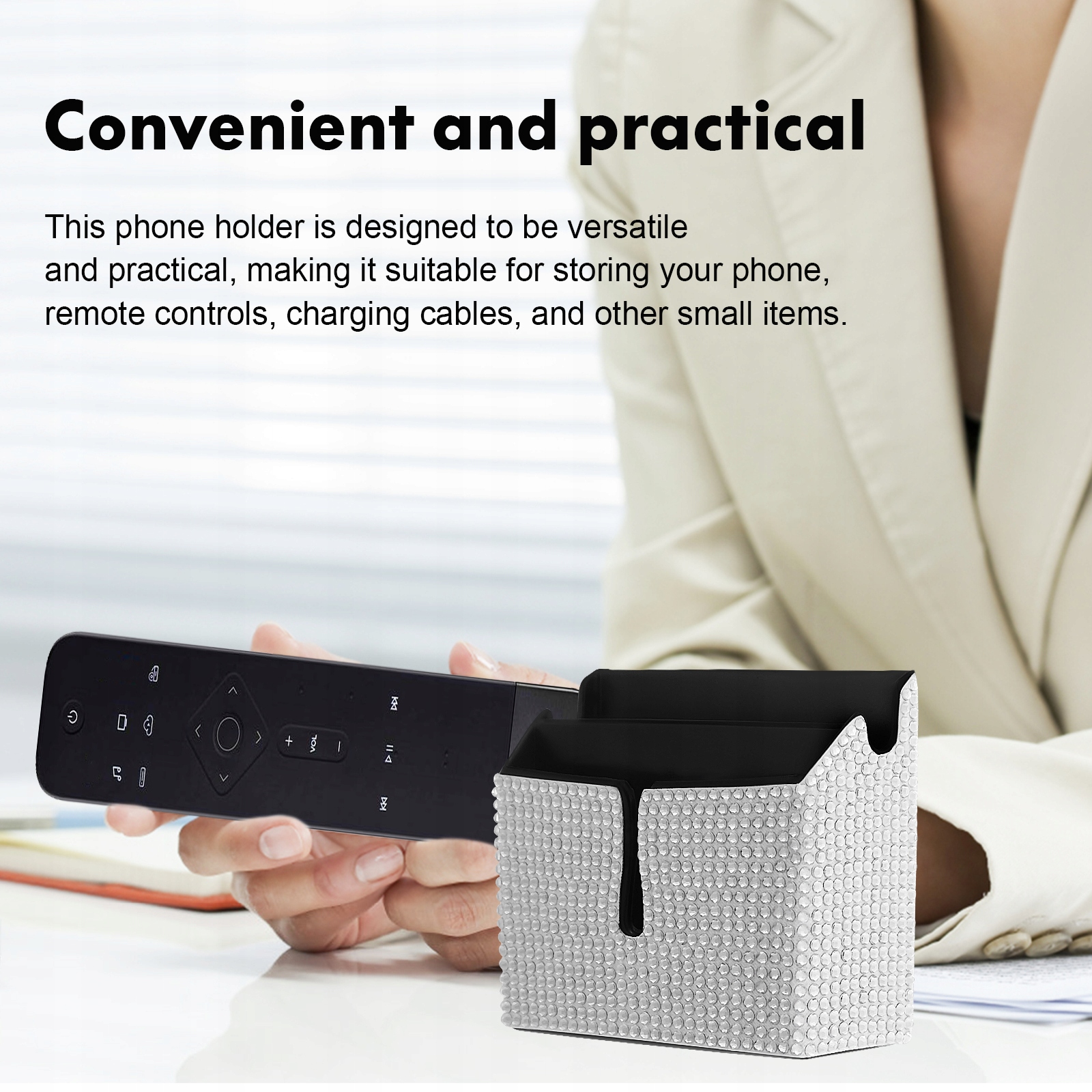 Удобство и практичность: этот держатель для телефона универсален и практичен, поэтому в нем можно хранить телефон, пульты дистанционного управления, кабели для зарядки и другие мелкие предметы.