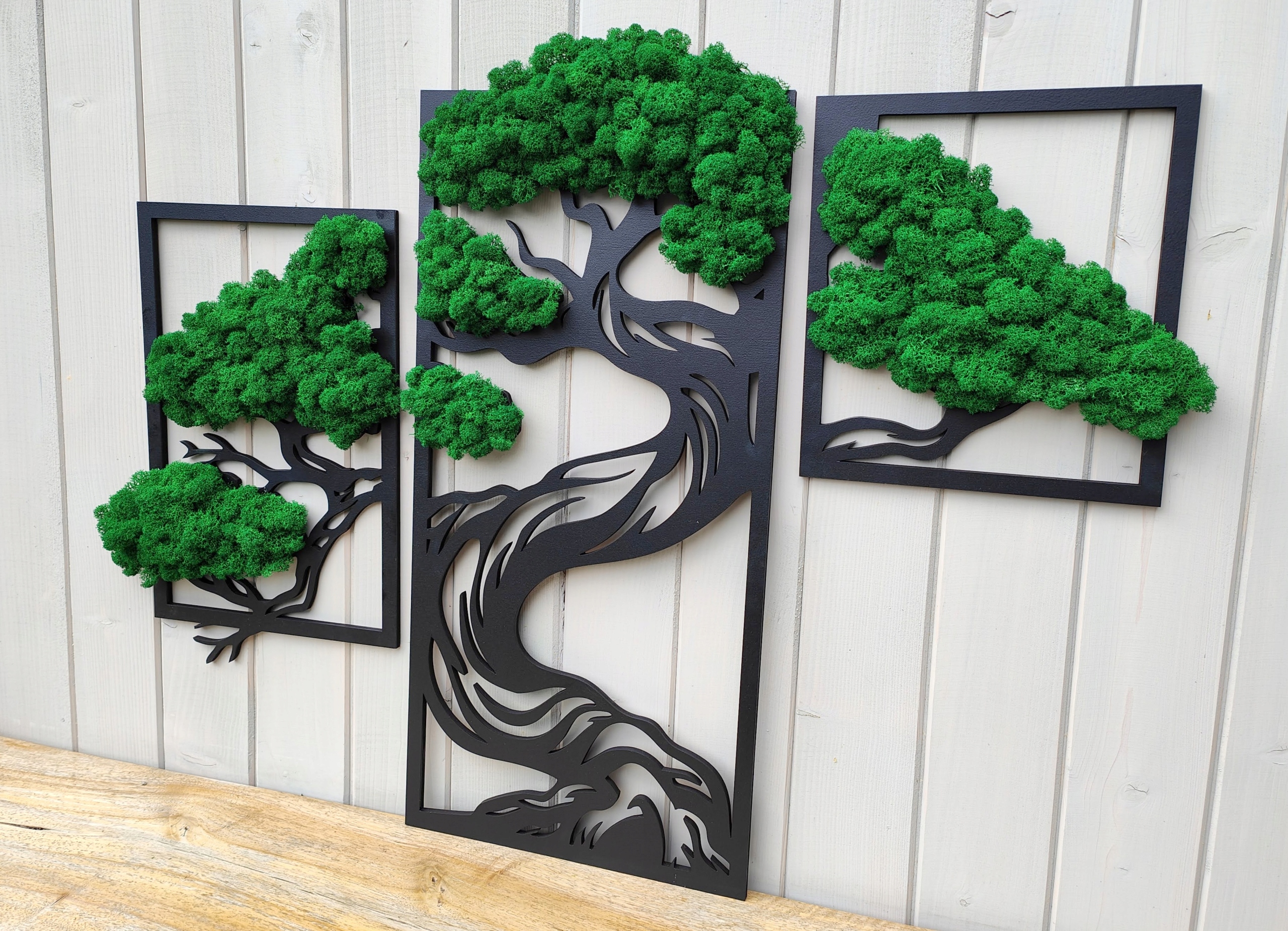 Триптих ДЕРЕВО БОНСАЇ 85см мох ДЕКОРАЦІЯ мохом мох