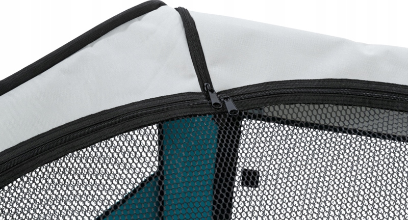 Полиэстер, из которого сделан плейпен, густой и устойчив к царапинам. Каждая из стен и крыша имеет вставку из сильной плетеной сетки на большой поверхности, благодаря которой циркуляция воздуха подходит для наших животных внутри. Две стены шестиугольной ручки оснащены двумя входными отверстиями, закрепленными на молнии и двумя маленькими карманами, один для липучки, другой из сетки, где мы можем хранить игрушки или что -то для наших гурманов. Кроме того, у одной из стен есть дыра для пьющего, так что у нашего питомца постоянный доступ к пресной воде.