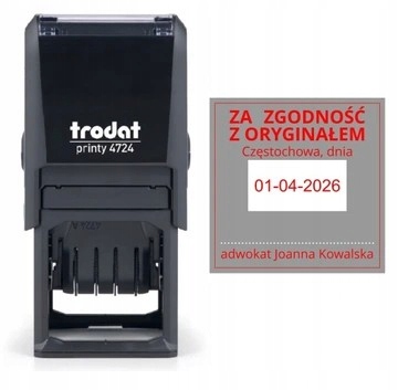 TRODAT 4724 - Datcher - RRRR -MM -DD Digital Date с собственным текстом 40x40mm