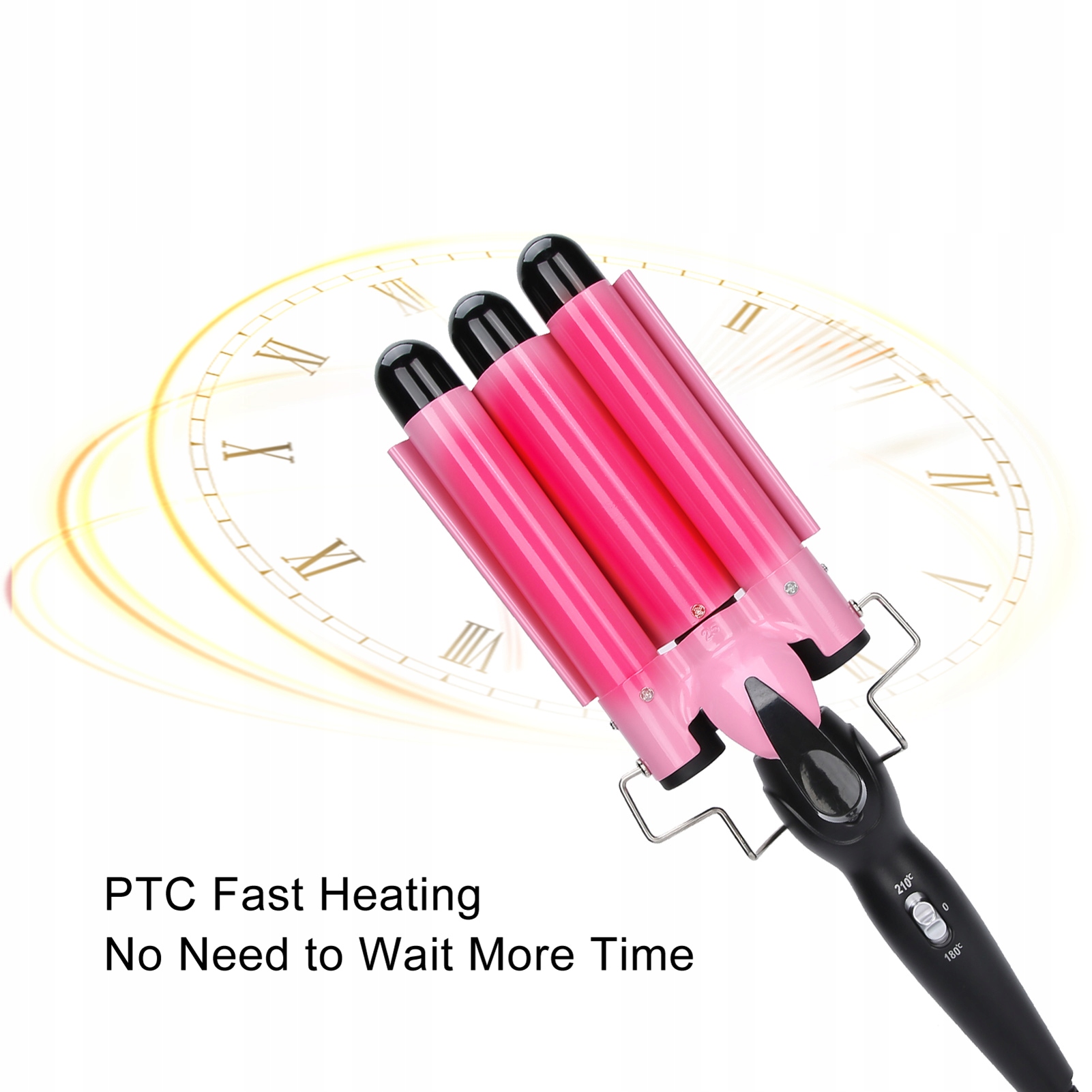 Функция: 1. Быстрое отопление, всего 30 секунд от 0 до 210 ° C (410 ° F), 180 ° C (320 ° F) подходит для людей с более мягкими волосами, а 210 ° C (410 ° F) подходит для людей с большим количеством и более жесткие волосы. Температура может быть легко адаптирована к типу и отделке ваших волос, чтобы получить красивые волнистые прически. Подходит для всех причесок, керамика с подогревом производит отрицательно заряженные ионы, создавая мягкие и блестящие волнистые прически без Frizu. Биглера сделана из специальной керамической эмали. Нанотехнологическая обработка поверхности не повредит волосам и сделает их более здоровыми и естественными, ручка оснащена нержавеющей стали и является более долговечной. Необходимо для жизни, подходящие для свиданий, вечеринок, свадеб, всегда показывают уникальные прически для различных случаев. Утолщенный шнур питания, повернутый на 360 °, предотвращая запутанность, удобную работу, не -стеснительную ручку текстуры, обеспечивает определенную сцепление, изолированное наконечник ведра для большей безопасности. Курлер с тройной лапкой для волос