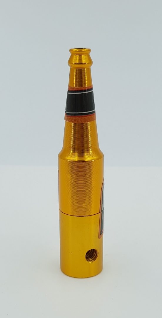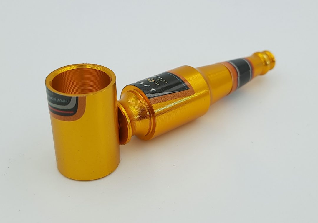 Предложение распространяется на практичную трубку бутылочной формы, представленную на фотографиях. Он изготовлен из металла и состоит из двух частей. Это облегчает чистку ствола. Эти детали свинчиваются между собой и создается бочка, как на фото. Трубка маленькая и удобная, поэтому ее можно брать с собой куда угодно. Он легко поместится в вашем кармане. Длина трубки 8,3 см.