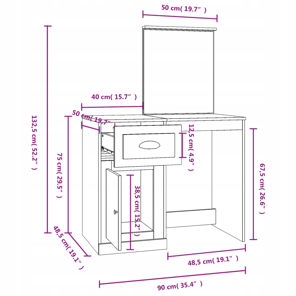 Плюковой столик с зеркалом черный 90x50x132,5 см - дерево, акрил