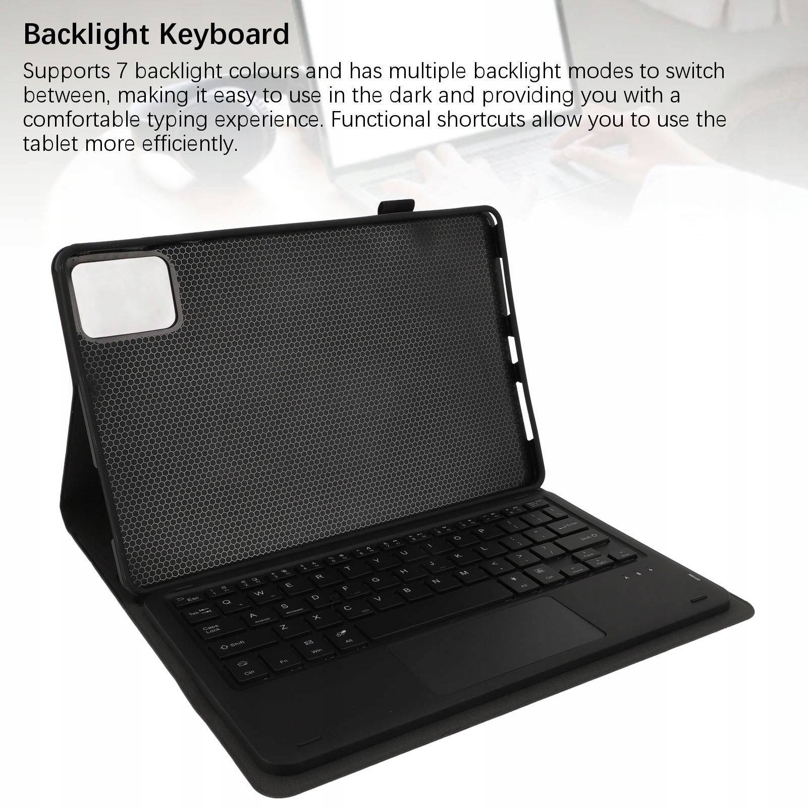 4. Клавиатура подсветки: Skeaks 7 Colors Bearlight Colors и имеет множество режимов подсветки для прокладки, которые стакулируются в темноте и обеспечивают удобное письмо. Функциональные ярлыки позволяют использовать планшет более эффективно.