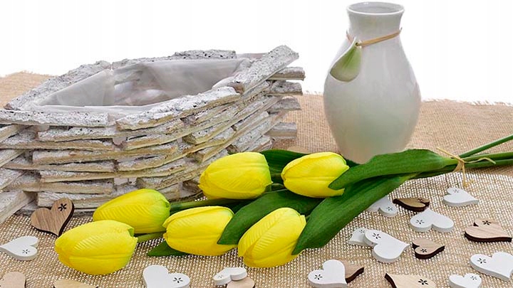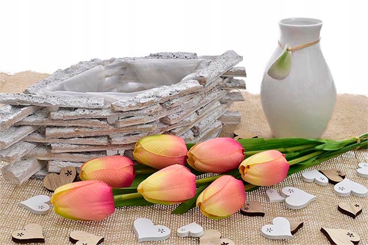 - Украшение выполнено из добавление головок тюльпанов — чрезвычайно радостное, весеннее дополнение к любому интерьеру или композиции.