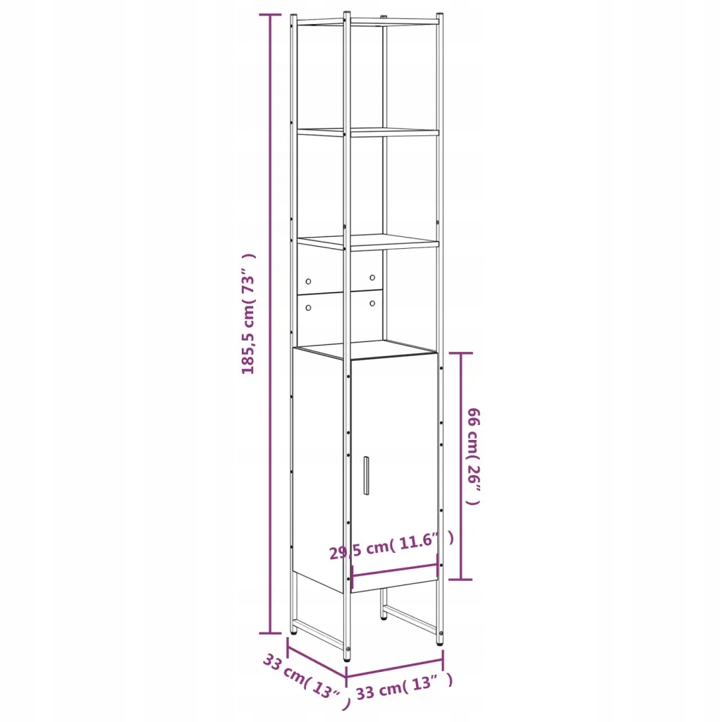 Шкаф для ванной комнаты из дымчатого дуба 33x33x185,5 см