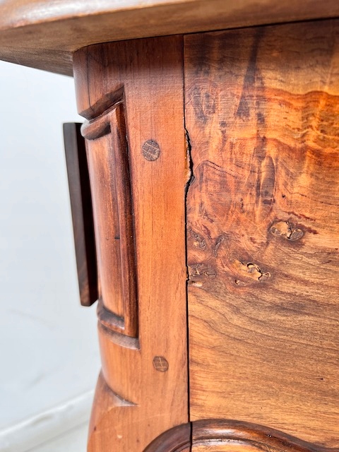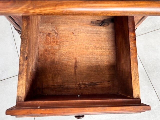 Прикроватные тумбочки из массива дерева. Очень хорошо. Старый стиль. На них много точек, которые должны напоминать следы короеда. Есть и некоторые поразительные особенности. Столы имеют шипы и прочно сделаны. Они в хорошем состоянии. Единственный недостаток – небольшое подсыхание клея на правой стороне одного из столиков. Других повреждений и дефектов они не имеют. На них видны типичные следы использования. Они довольно тяжелые, как и положено массиву дерева. Готов к вставке.