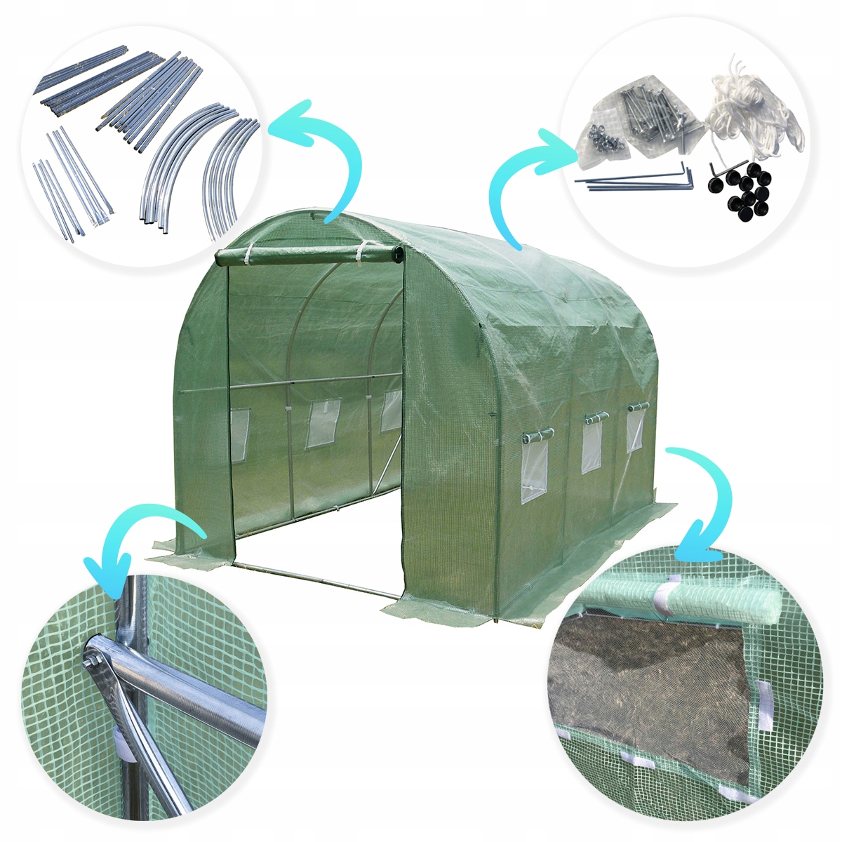 ☘ 2x3m Пластиковый туннель - 6m2 Зеленый + 34 точка ирригационной системы | Толстые оцинкованные трубки Вентиляция через 6 окон PE FOIL с UV4 Filter | Легко выращивать растения и их защита Орошение культивирования