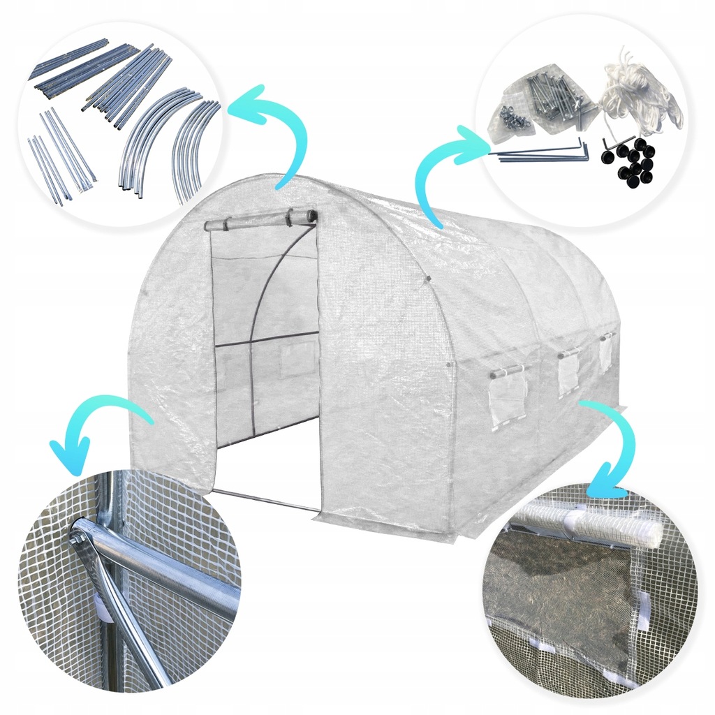 ☘ Большой тунл из стекла 2.5x4m - 10m2 белый + садовый разбрызгивающий спринклер 10м | Толстые оцинкованные трубки Вентиляция через 6 окон PE FOIL с UV4 Filter | Легко выращивать растения и их защита Адекватная гидратация ☘