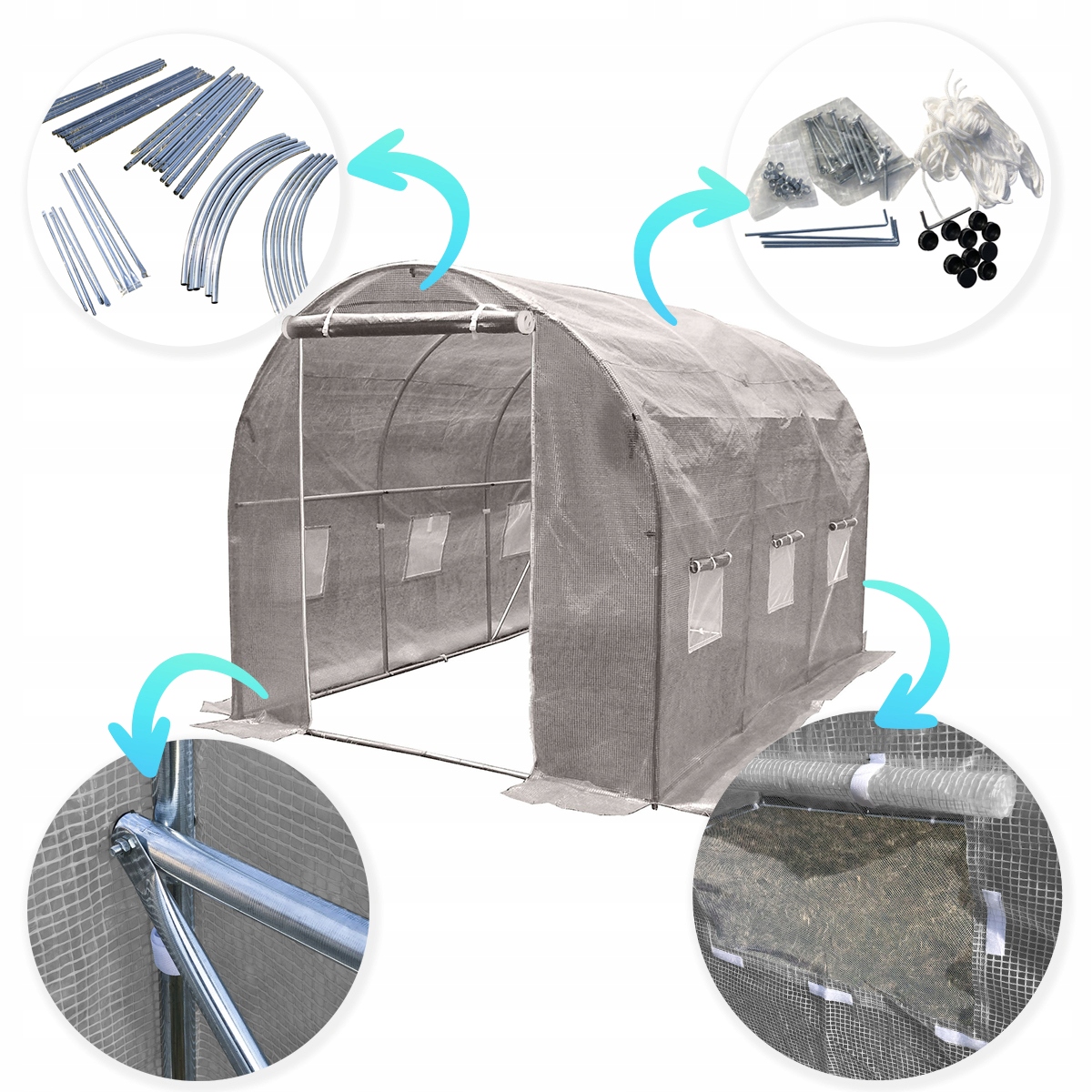 ☘ 2x3,5 млн. Пластиковый туннель - 7m2 серый + система распыления 10m | Оцинкованные толстые трубки Вентиляция через 6 окон PE FOIL с ультрафильтром Легко выращивать растения и их защита Адекватная гидратация ☘