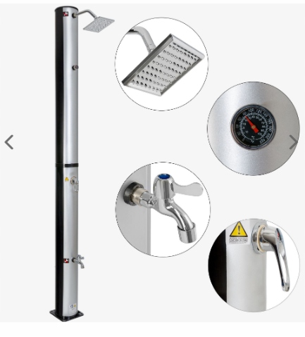 Этот солнечный душ также имеет встроенный термометр и душ на ногу. Это позволяет вам читать оптимальное время в душе.