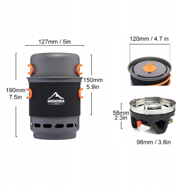 Весь набор имеет компактность, которая гарантирует легкое хранение и транспорт, а используемые материалы обеспечивают его долговечность даже при интенсивном использовании. Маленькие размеры и вес 0,5 кг не ставят багаж. В наборе приготовления WIDESEA используется анодированный алюминий, который представляет собой материал, известный своей силой и легкостью, устойчивым к коррозии и механическим повреждениям, который обеспечивает пользователям долговечность и надежность, необходимые во внешних условиях.