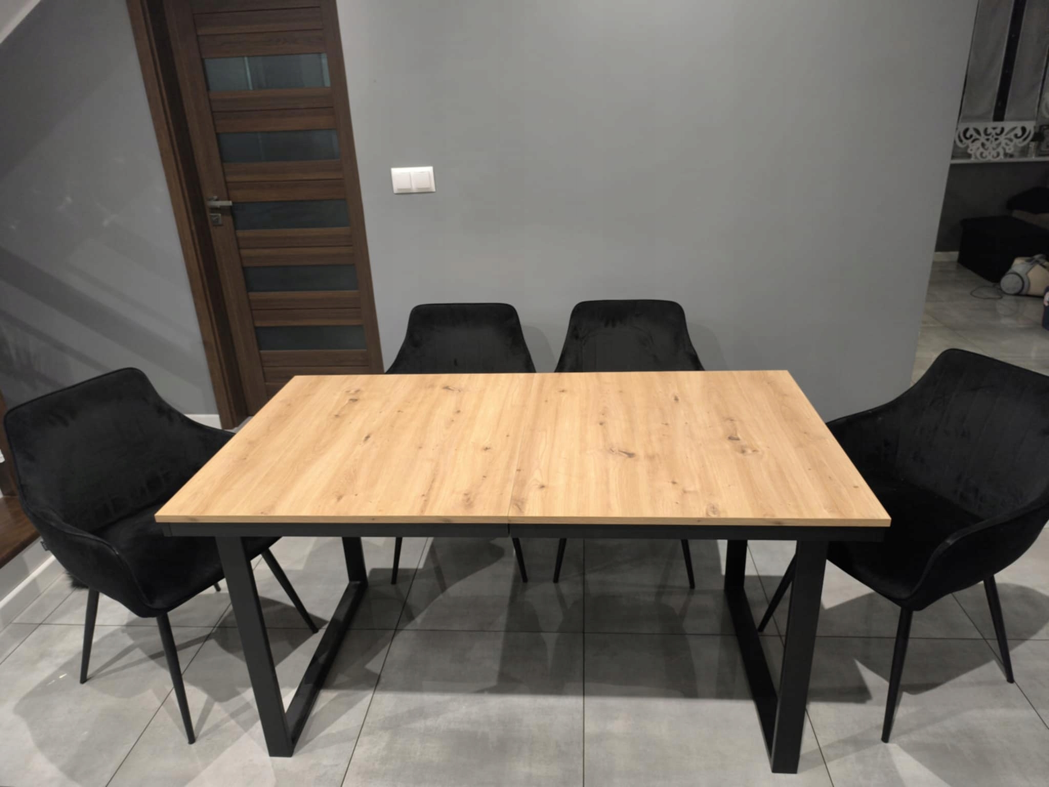 Таблица изготовлена в сплошной подключении ламинированной пластины и металла. Чтобы гарантировать долгосрочное использование, мы решили, что вся структура ног и Oskrzynia, в которой есть место для вставки, изготовлена из металла, потому что она гарантирует стабильность с помощью сложенного и распространенного стола